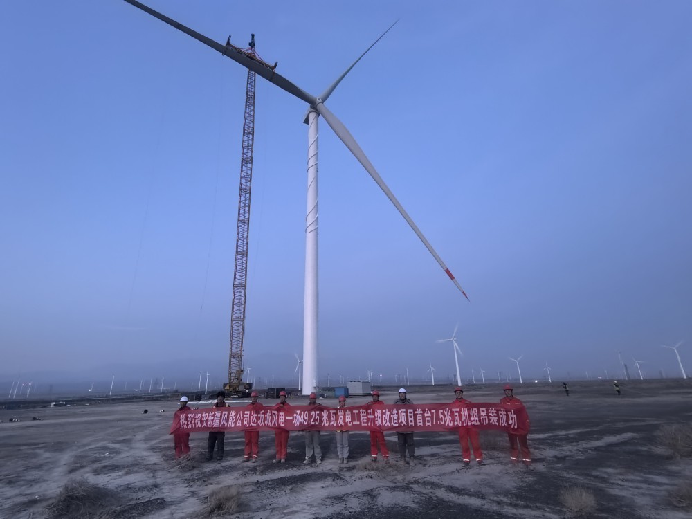 (通訊員 林子琴/攝影 張繼鋒)金秋送爽,捷報(bào)頻傳。10月8日,隨著最后一節(jié)葉片精準(zhǔn)對(duì)接,風(fēng)能公司達(dá)坂城風(fēng)電一場(chǎng)49.25兆瓦發(fā)電工程升級(jí)改造項(xiàng)目首臺(tái)風(fēng)力發(fā)電機(jī)組順利完成吊裝。這標(biāo)志著這座老牌風(fēng)電場(chǎng)的設(shè)備迭代升級(jí)工程進(jìn)入設(shè)備安裝階段,“煥新畫(huà)卷”正式加速鋪展。